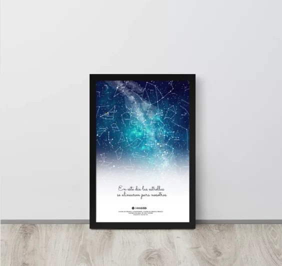 Un mapa estelar es un recuerdo único que muestra la alineación de las estrellas en un momento especial, como un nacimiento o una boda.
